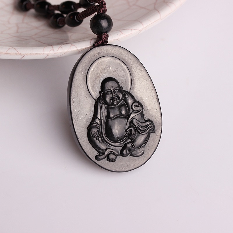 墨玉弥勒佛药王石吊坠:祥瑞与健康的象征